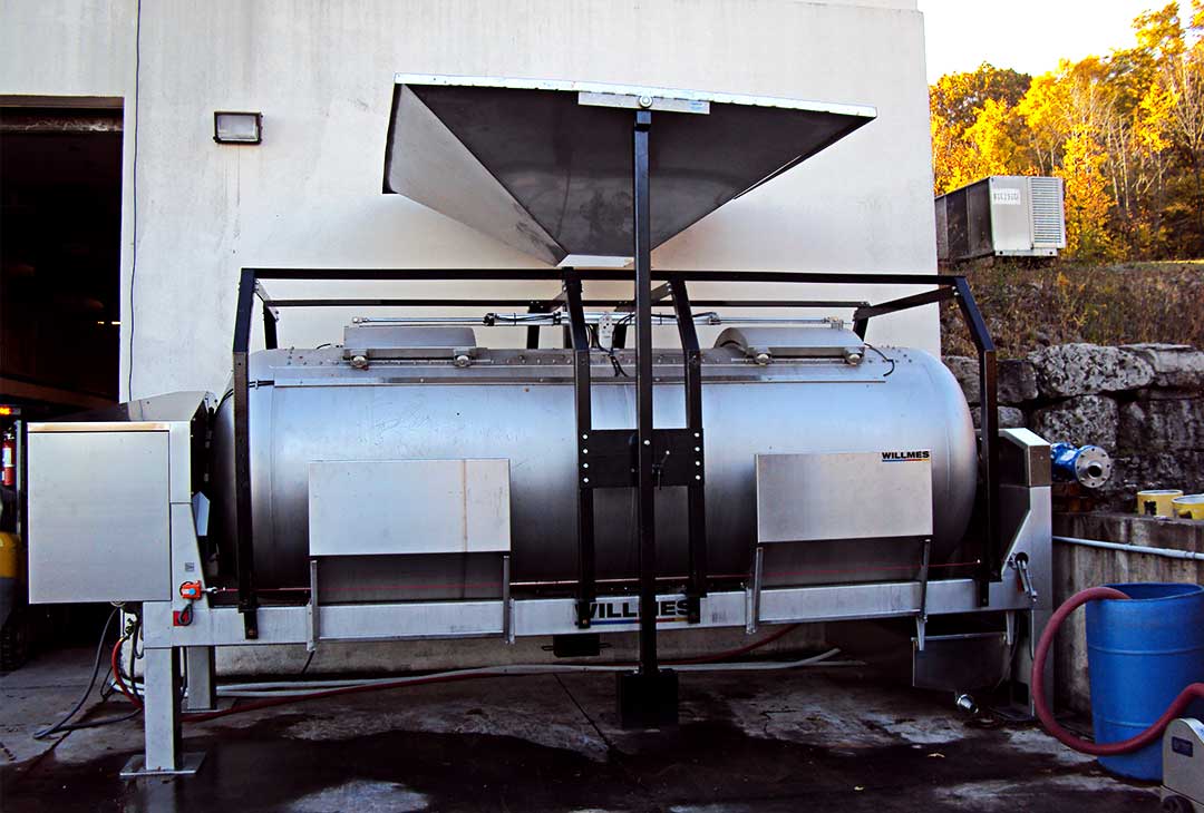 Description A custom hopper was required to fill his grape crusher from 2 different openings. We designed a canterlever system which allowed the hopper to move from opening to opening very easily.